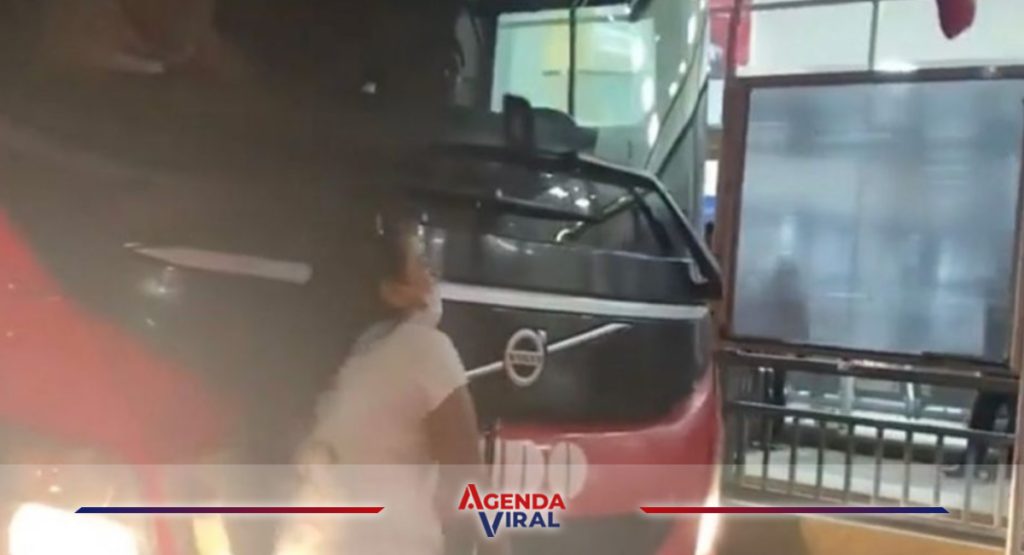 En el video se escucha la voz de la joven: “me tengo que ir, ¿por qué no me suben?, ayúdenme”, pero el chofer del autobús la siguió empujando