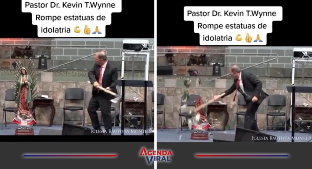 En redes sociales se viralizó un video en el que un pastor destruyó estatuas de la Virgen de Guadalupe y de la Santa Muerte en Tamaulipas