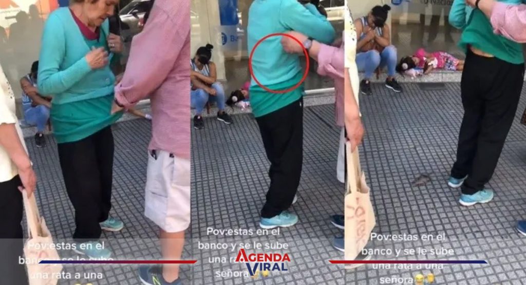 [VIDEO] Rata se mete en la ropa de una señora que estaba haciendo fila en el banco