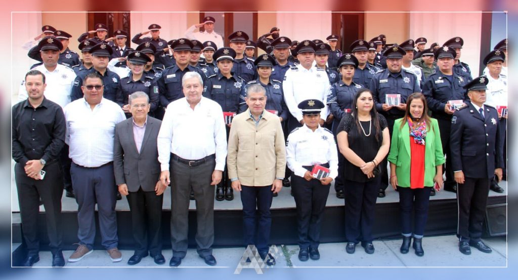 Preside gobernador Miguel Riquelme entrega de grados y equipo por 15.4 mdp a Policía de Saltillo.