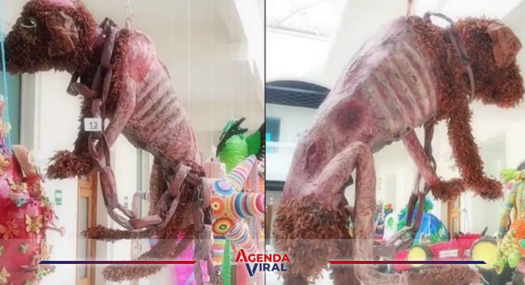 El usuario @elalebrijemayor compartió la piñata que tiene forma de un perrito maltratado y colgado junto a otras artesanías