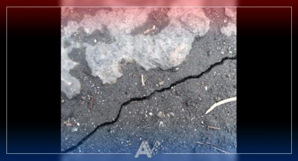 En las imágenes puede observarse a detalle y con toda precisión cómo la grieta en el pavimento se extiende y se contrae con el temblor.