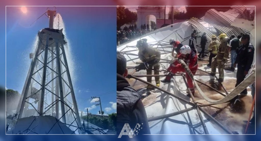 [VIDEO] Dos muertos tras colapso de tanque de agua elevado recién inaugurado en San Martín Texmelucan, Puebla