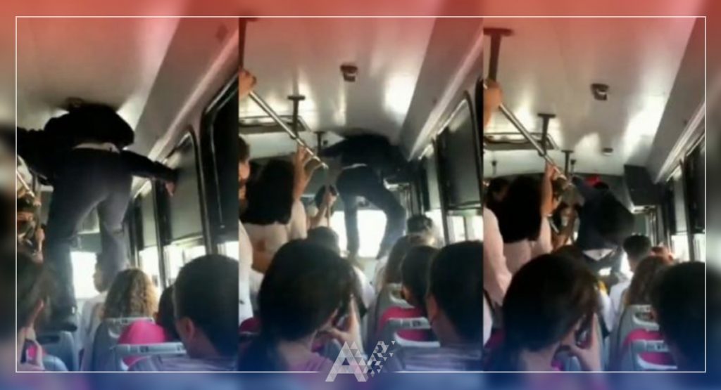 [VIDEO] ¡Bajan! Joven camina encima de los pasajeros de un camión en Sinaloa porque iba lleno