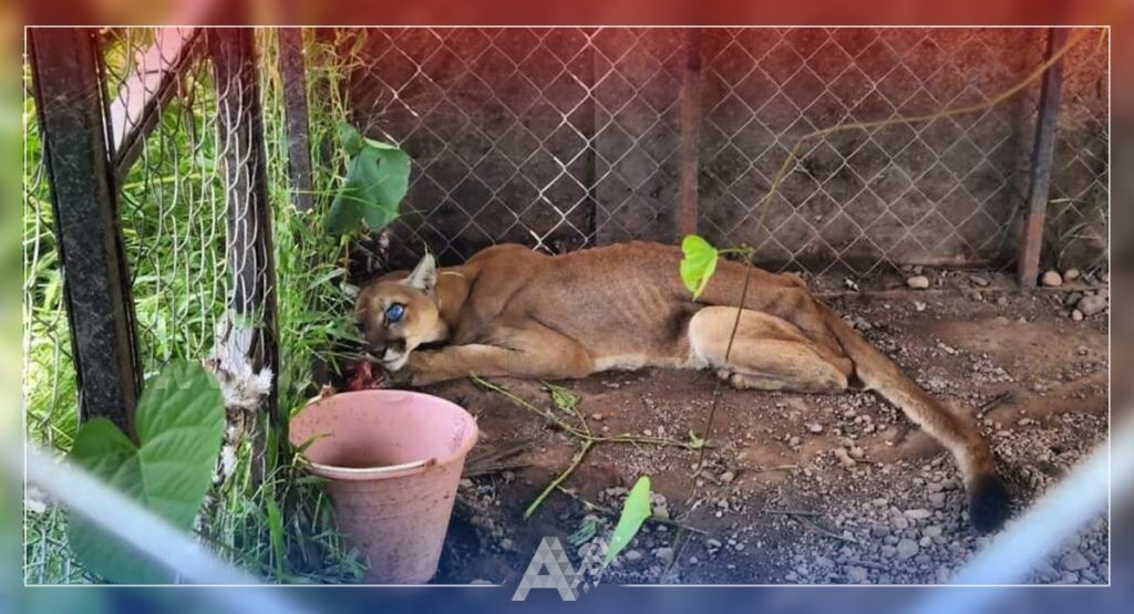 Al arribar al sitio, ubicaron abandonado dentro de una jaula a un felino del género puma, el cual visiblemente se encontraba en mal estado de salud.