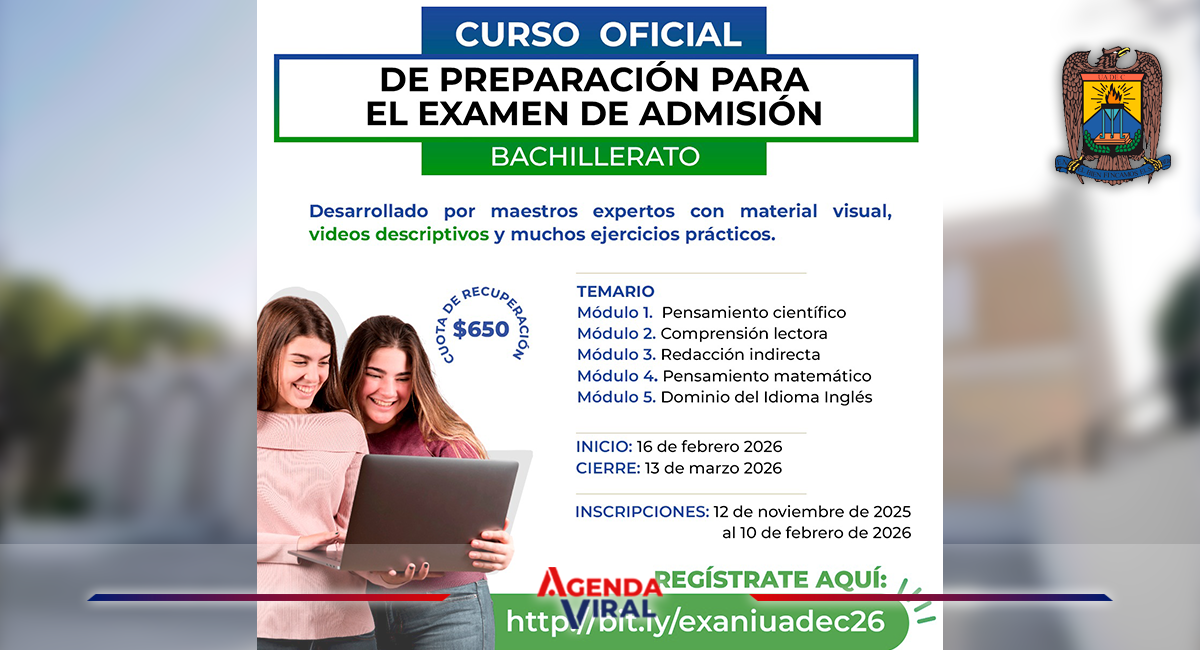 El curso está desarrollado por maestros expertos y cuenta con material visual como videos descriptivos, con sesiones en línea y una gran variedad de ejercicios prácticos, las inscripciones se encuentran abiertas y cierran el 10 de febrero de 2026 en http://bit.ly/exaniuadec26.