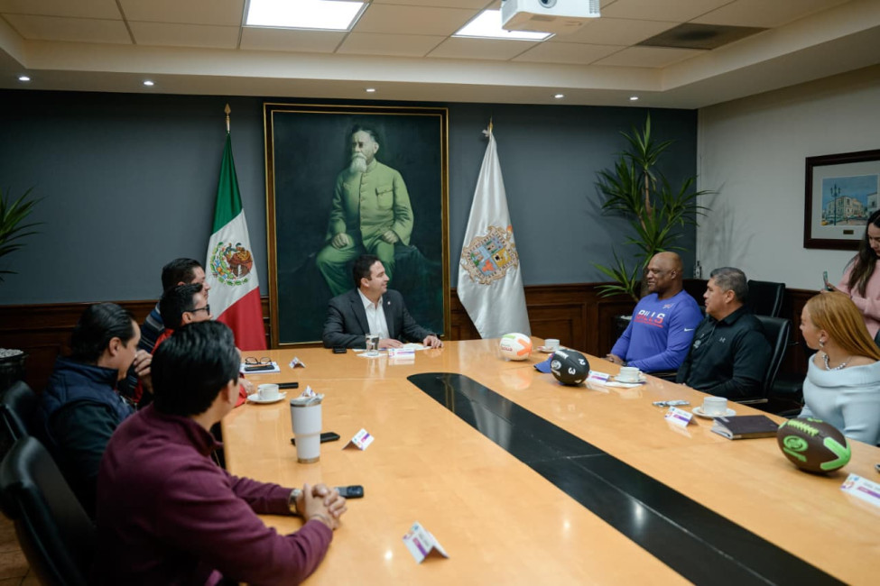 Durante una reunión de trabajo en la Presidencia Municipal, Díaz González reiteró su disposición para llevar a cabo iniciativas en materia deportiva en todos los sectores de la ciudad, en especial en la disciplina de flag football.