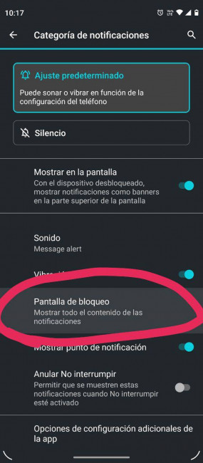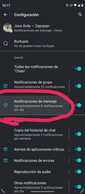 5. Ahí busca el apartado “Notificaciones de mensaje” e ingresa.