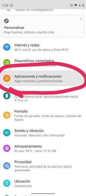 2.Busca la opción “Aplicaciones y notificaciones”.