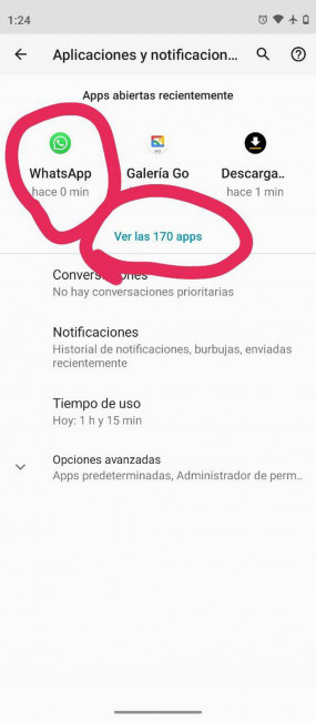 3. Una vez ahí se mostrarán usualmente las apps más usadas, donde es muy probable que esté el ícono de WhatsApp al inicio. Si no aparece ahí da tap en la opción “Ver todas las apps”.