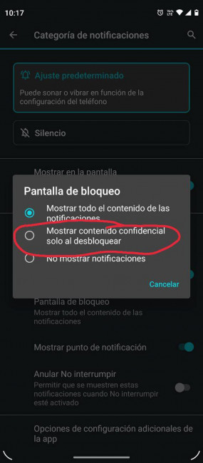 8. Se ofrecen tres alternativas, en donde tenemos que elegir la opción de “Mostrar contenido confidencial sólo al desbloquear”. Y listo, con eso podremos mantener privados los mensajes recibidos.