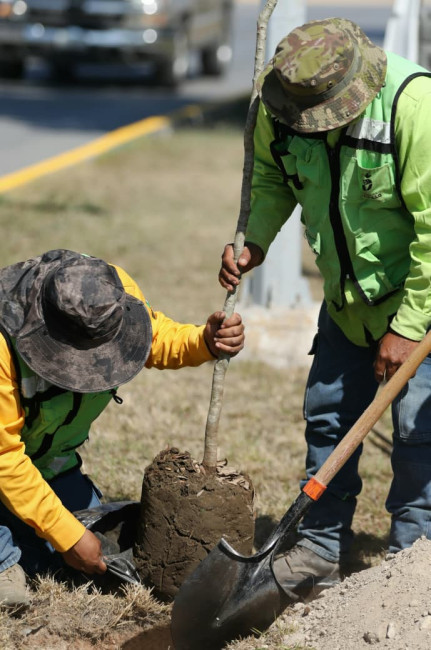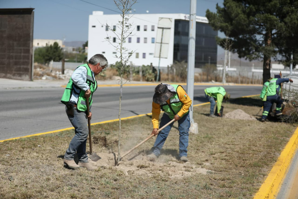De manera simultánea, para impulsar el amor al medio ambiente y mejorar los espacios públicos, personal de “Aquí Andamos” intensificó su jornada de reforestación en las principales vialidades de Saltillo, a través del programa “Bosques Urbanos Lineales”.