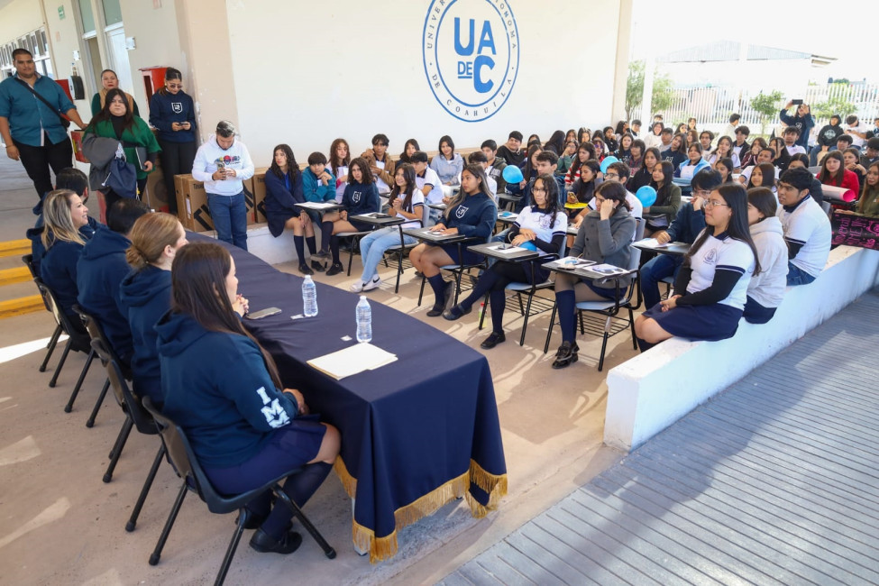 Lo acompañaron la coordinadora de la Unidad Laguna, Sandra López Chavarría, la directora del Instituto “Manuel Muñoz Olivares”, Minerva Estrada Aguirre, la directora del Instituto de Enseñanza Abierta, Jessica González Calderón, así como alumnos y docentes de ambos planteles.