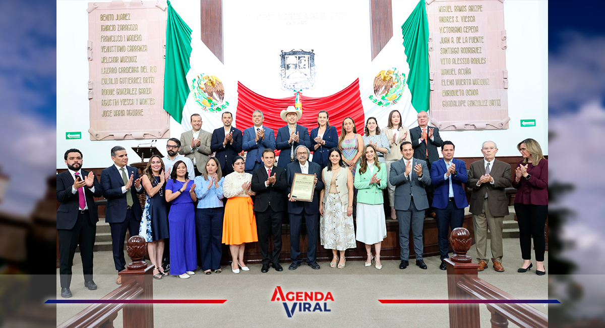 Al finalizar este pronunciamiento, la Diputada Luz Elena Morales Núñez, Presidenta de la Junta de Gobierno del Congreso y el Diputado Álvaro Moreira Valdés, entregaron al homenajeado un reconocimiento a nombre de las Diputadas y Diputados integrantes de la LXIII Legislatura.