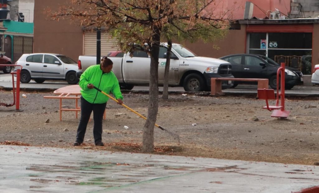 El alcalde Javier Díaz González informó que, como parte de la estrategia de atención y prevención ante la situación climática en la región, personal del programa “Aquí Andamos” trabaja de manera coordinada para atender los reportes ciudadanos realizados a través del asistente virtual “Saltillo Fácil”, al 844-160-08-08.
