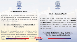 Oficializan en la UAdeC los Nombres de la Facultad de Enfermería y Nutrición y la Coordinación General de Sustentabilidad diciembre 5, 2025
