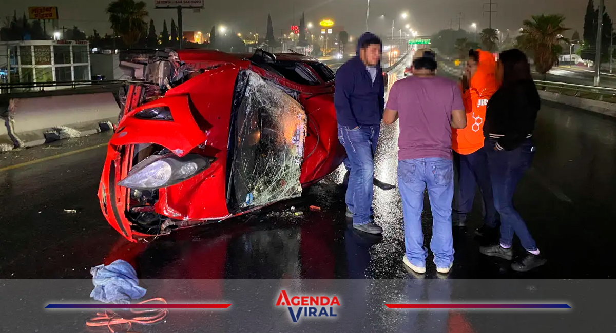 El taxista no logró esquivar el obstáculo, por lo que se impactó contra la estructura, la cual funcionó como rampa, provocando que el vehículo terminara volcado sobre su costado izquierdo.