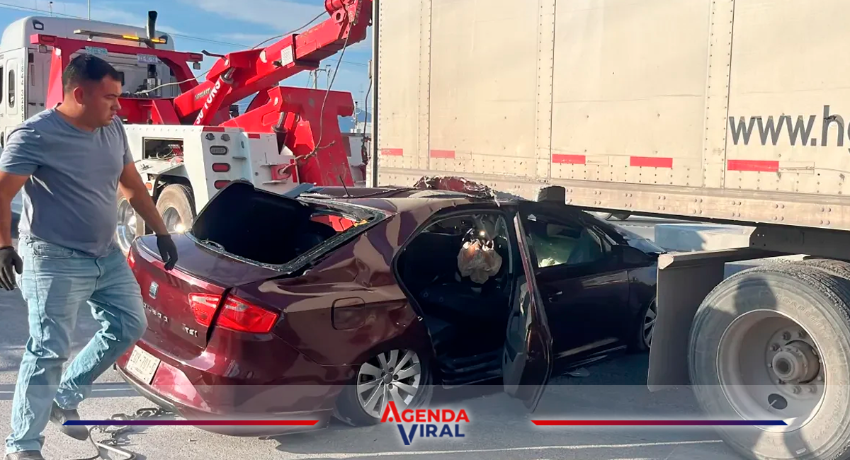 Saltillo — Un aparatoso accidente se registró esta mañana en el Libramiento Óscar Flores Tapia, a la altura de la entrada a Loma Alta, cuando un tráiler realizó una vuelta en “U” sin tomar precauciones y embistió a un matrimonio que se dirigía a su trabajo. El incidente dejó daños materiales severos, aunque los ocupantes del vehículo afectado sólo presentaron golpes leves.