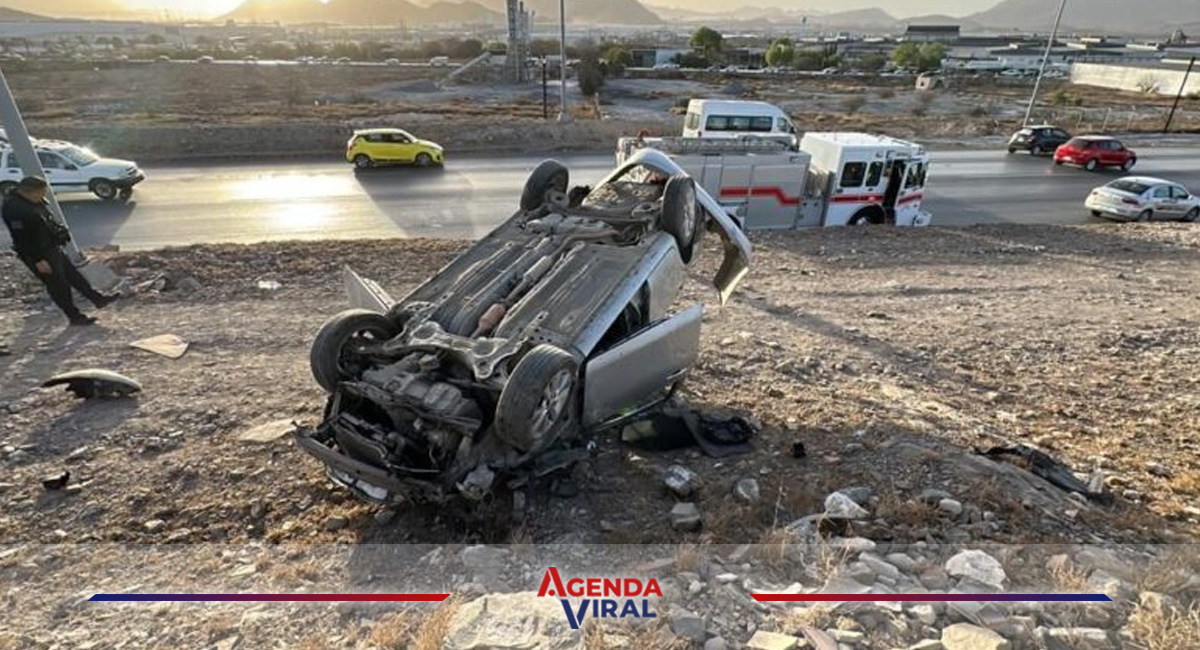 Al salir de la carpeta asfáltica, el vehículo con placas RLW 026 A del estado de Nuevo León, volcó y dio varios giros sobre su propio eje.