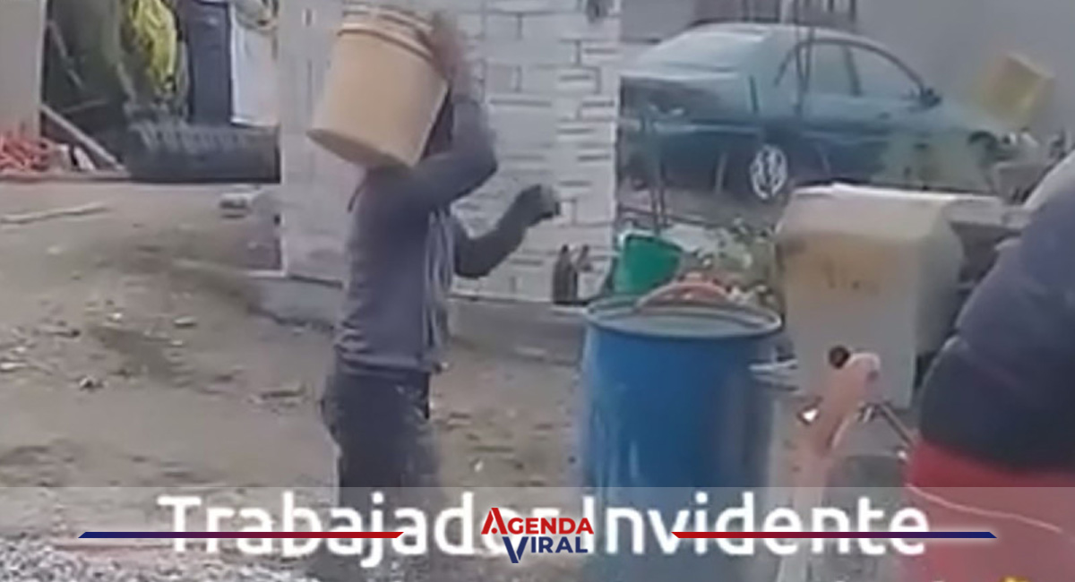 En el video aparece el albañil, identificado como Alejandro, cargando botes de grava hasta un trompo de mezcla.