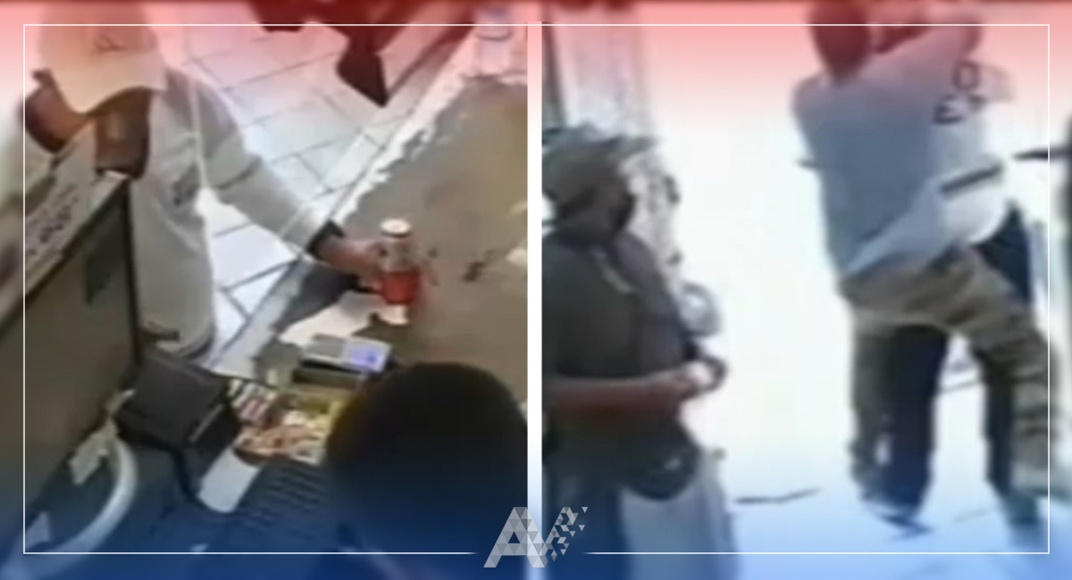 El ladrón entró solo a la tienda, volteó al fondo, hacia la caja, se agarró la cachucha y se regresó a la puerta. Ahí se sacó un arma de la cintura, regresó y apuntó a dos trabajadores.